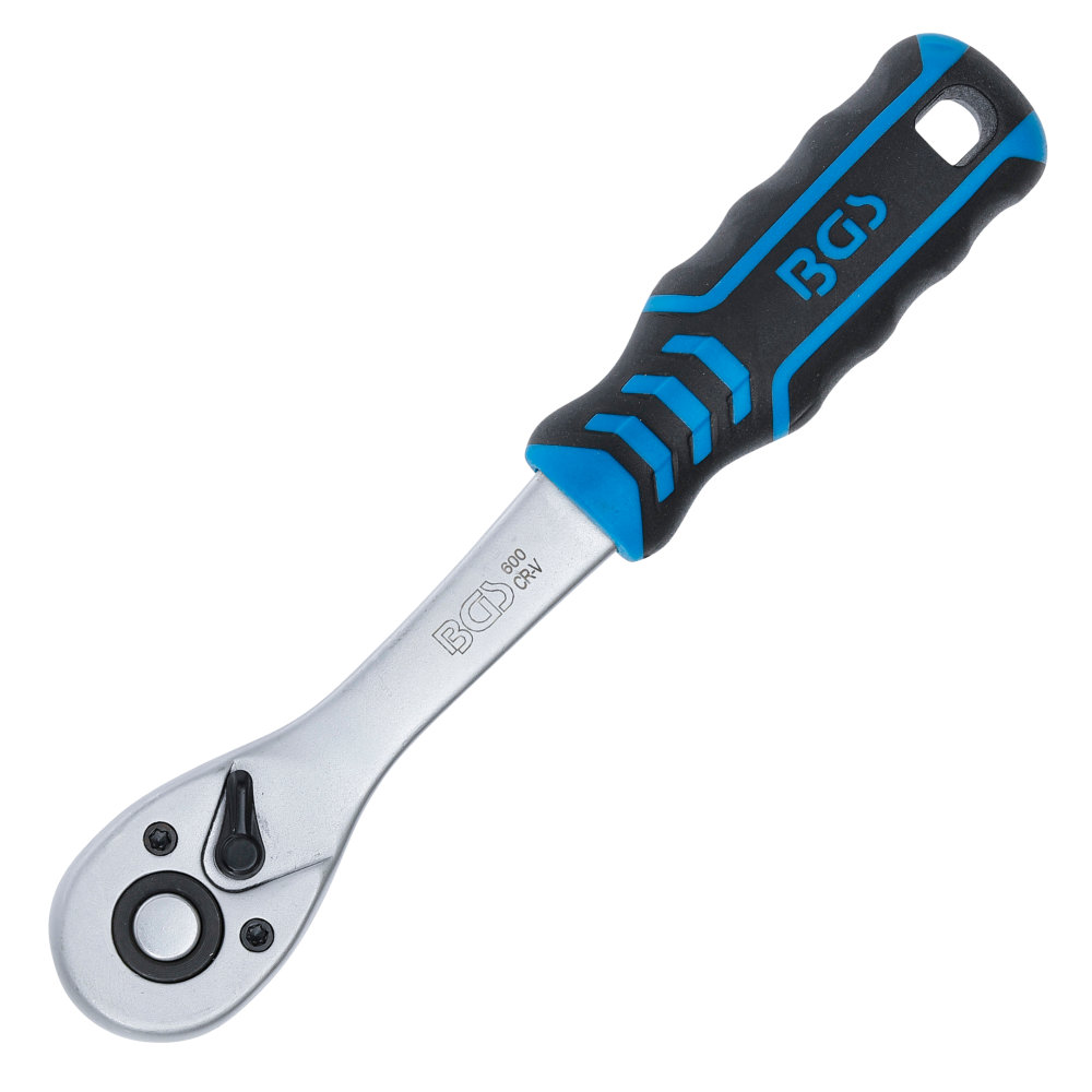 Verwenden Sie Umschaltknarren nur in Kombination mit passenden Steckschlüsseleinsätzen und achten Sie darauf, dass die Umschaltung sicher funktioniert. Tragen Sie Handschuhe, um sich vor Verletzungen durch abrutschende oder blockierte Knarren zu schützen.
